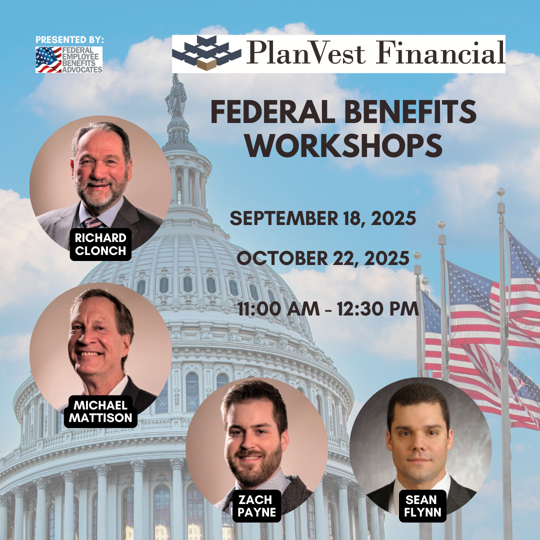 You are invited to our complimentary, one-and-a-half-hour Federal Benefits Virtual Workshop. This event is scheduled from 11:00 am to 12:30 pm on October 22, 2025. This webinar aims to help Federal Employees better understand their Federal Benefits and how they fit into their retirement planning.